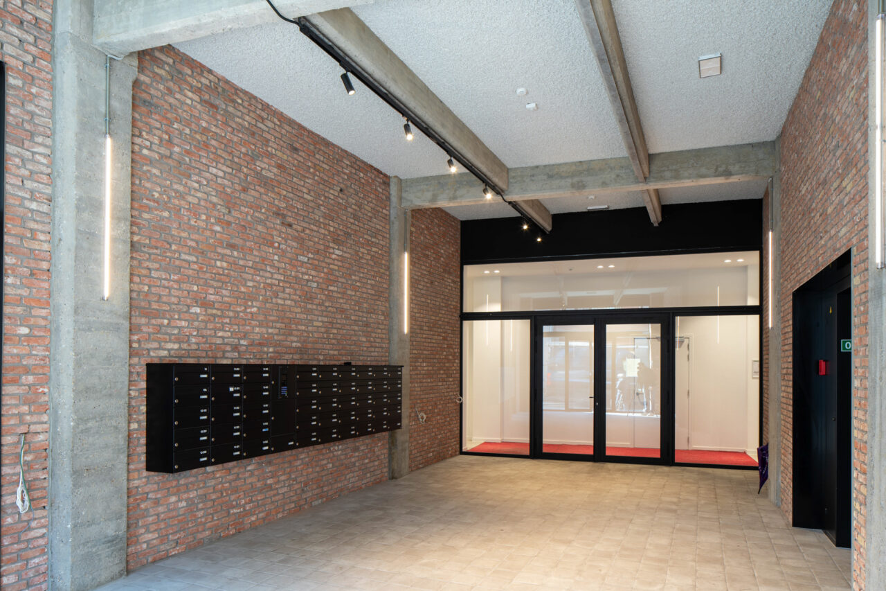 Achter de historische gevel zijn afsluitbare wintertuinen gecreëerd als buitenruimte voor de appartementen. De toon-op-toon optopping bekroont het pand op een respectvolle manier en vormt, samen met de nieuwe programma-mix, een frisse impuls voor het gebouw en zijn omgeving.